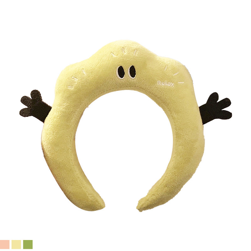 Soft and adorable plush headband featuring cute cartoon eyes and playful hands on the sides. Perfect for makeup routines, skincare, or just adding a fun touch to your look. Made from cozy plush fabric. Approximate size (17 × 17 cm). Available in multiple cheerful colors.