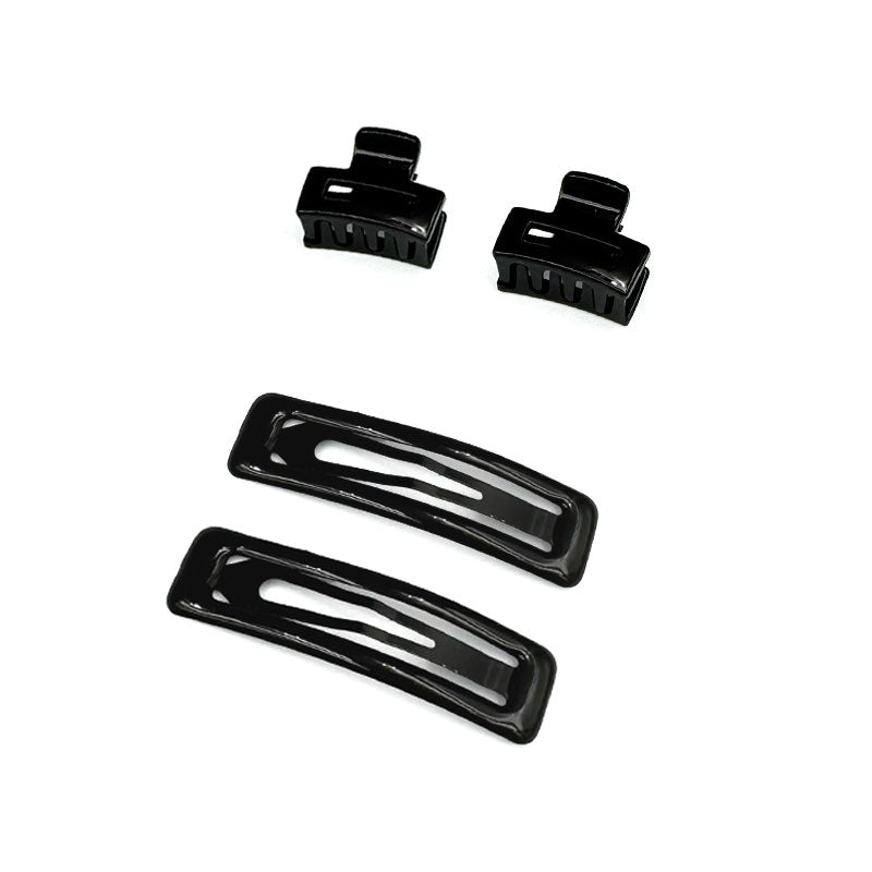 Stylish set featuring snap tic tac clips paired with mini hair claws. Designed for a secure hold and everyday use, this set combines practicality with a sleek look, perfect for keeping your hairstyle neat and chic throughout the day.
