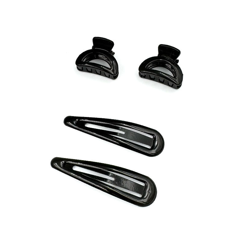 Stylish set featuring snap tic tac clips paired with mini hair claws. Designed for a secure hold and everyday use, this set combines practicality with a sleek look, perfect for keeping your hairstyle neat and chic throughout the day.